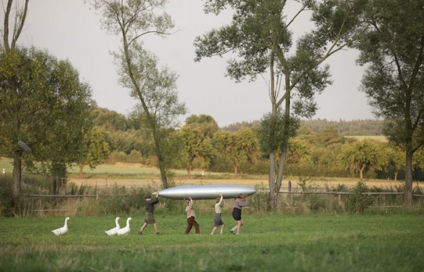 Jen slepice, husy a herci jsou skuteční. Vše ostatní je dokonalá iluze vytvořená za použití starého dřeva, skutečných, po staru dělaných omítek a důkladného patinování. Dokonce i slepičince jsou umělé.
