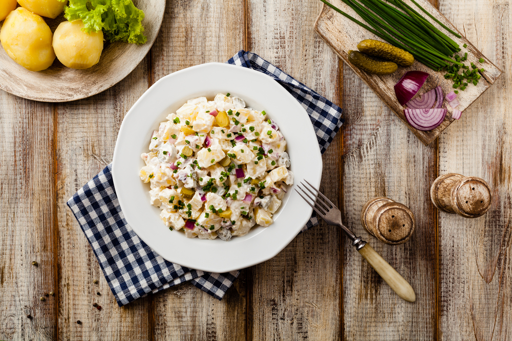 I z bramborového salátu můžete velmi lehce vykouzlit dietní jídlo. Místo majonézy použijte její light variantu nebo bílý jogurt. Salát můžete spojit i směsí z citrónové šťávy, oleje a hořčice. Pokud chcete, aby bramborový salát obsahoval co nejméně cholesterolu, vynechte také uzeniny a vařená vejce.