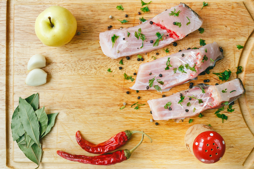 Na dušeného kapra na jablkách budete potřebovat 800 gramů kapra, 250 gramů jablek, 30 gramů medu, 60 gramů cibule, 25 gramů strouhaného perníku, 25 mililitrů citrónové šťávy, 300 mililitrů bílého suchého vína, rostlinný tuk, bobkový list, skořici, rozinky a sůl.