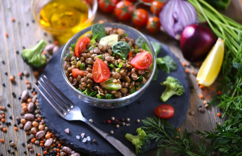 Čočkový salát může sloužit jako skvělá lehká večeře, která zasytí, ale nepřidá kila.