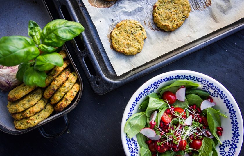 Tyto zeleninové placky jsou takovým updatem našich bramboráků. Tato verze je ale lehčí a díky batátům i výživnější. V létě do těsta házím všemožné bylinky, které mi přežívají na balkóně. Bazalka je však základ. Placky kouzelně ovoní.