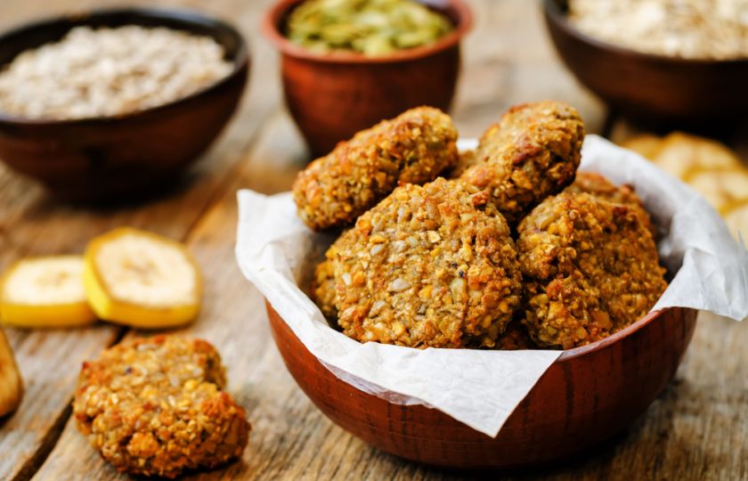 Nejprve si předehřejte troubu na 180 stupňů. Vločky, obě mouky, cukr a sodu pečlivě rozmíchejte v míse. Přidejte posekané pistácie, rozmačkaný banán a zalijte rozpuštěným máslem. Směs důkladně propracujte – měla by dobře držet pohromadě. Pokud ne, přidejte ještě trochu banánu – ten těsto slepí. Plech vyložte pečicím papírem a pokládejte na něj lžičkou vytvarované hrudky těsta. Počítejte s tím, že se směs při pečení trochu rozteče. Pečte přibližně 10 minut, než koláčky zezlátnou.