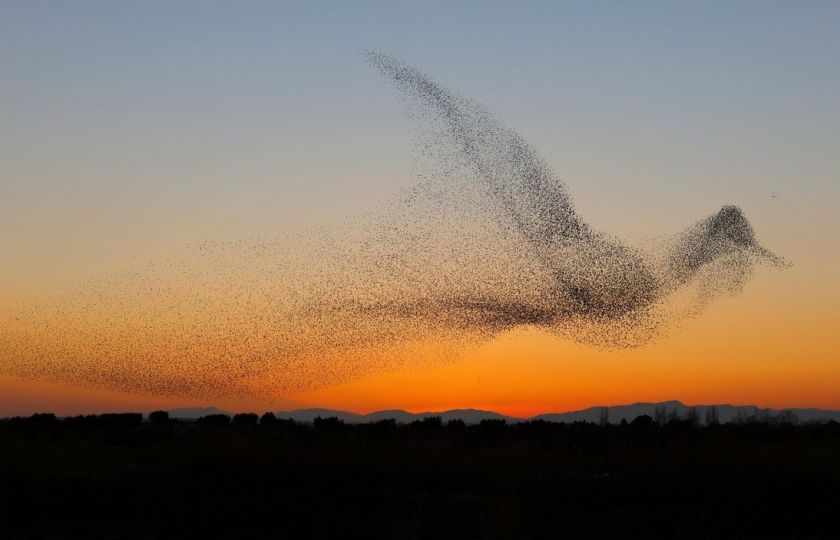 Třiapadesátiletý fotograf Daniel Biber zachytil na konci roku 2017 hejno špačků, které se po útoku dravce zformovalo do obrazce obřího ptáka. Dechberoucí podívanou se mu podařilo vyfotit na pobřeží u Costa Brava ve Španělsku. Biber zde během čtyřdenního pobytu pozoroval tisíce ptáků. A toto je výsledek.