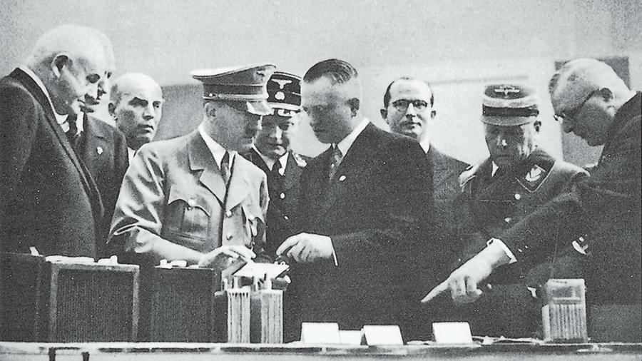 Ferdinand Posche a Adolf Hitler si v roce 1935 prohlíží prototyp pozdějšího Volkswagenu Brouk (zdroj: Profimedia)