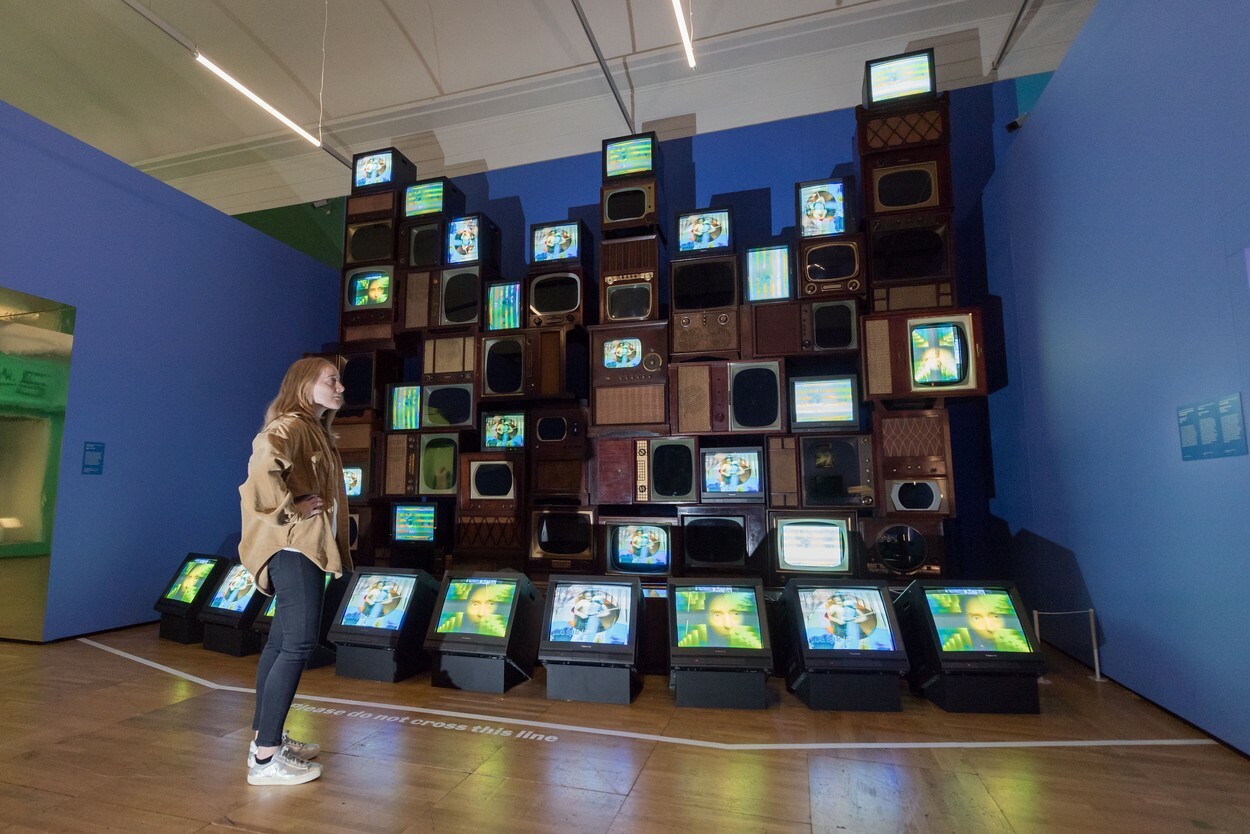 Dnes již zesnulý korejsko-americký videoumělec Nam June Paik toto jakoby předjímal. Jeho instalace Mirage Stage z roku 1986 je jedním z vrcholů přehlídky. Soustava blikajících televizních obrazovek oslavuje zenově hypnotické přijetí nekonečných a neomezených možností globální komunikace.