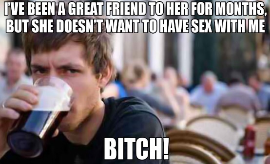 Předpokládá, že ženy (vlastně klidně i muži), o které se uchází, se nedokáží racionálně rozhodovat. Myslí si, že jeho „niceness“ ho opravňuje k tomu, aby měl nárok na vztah, anebo aby aspoň „dostal šanci“. Jenže na vztah, flirtování nebo sex nemá automaticky právo nikdo, ať se snaží sebevíc. Není to něco, co dostanete za odměnu, když se hezky chováte.