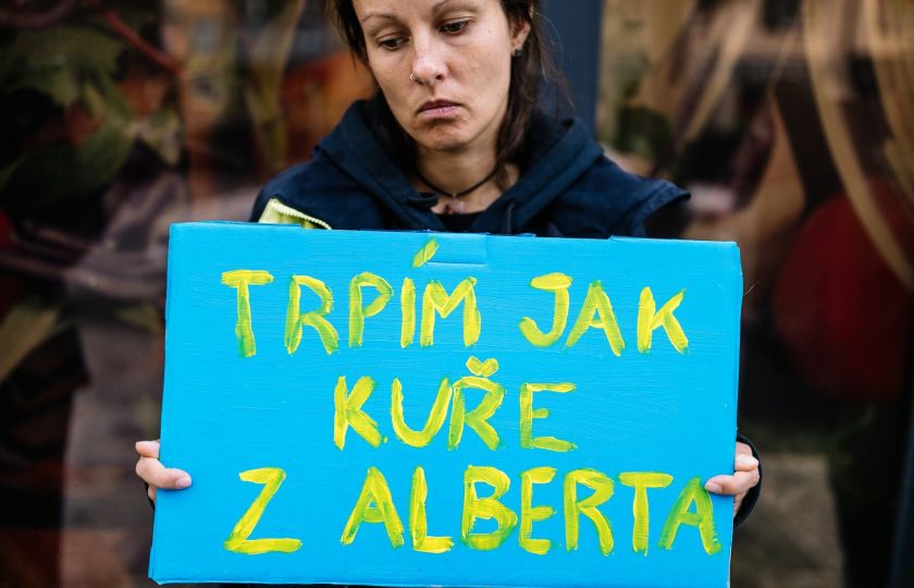 Kampaň spolku Albertova krutost dlouhodobě upozorňuje na utrpení kuřat ve velkochovech. Zmíněné videozáběry přitom skutečně pocházejí z jedné takové drůbežárny, odkud Albert nadále odebírá bílé maso. Kuřata na nich živoří v halách bez přirozeného světla, a tísní se po desetitisících na jednom místě. Šlechtěná na extrémně rychlý růst prý trpí bolestivými deformacemi nohou, dýchacími potížemi a mnohdy umírají na srdeční selhání. Kvůli váze, kterou jejich kostra nezvládá unést, často celé dny jen sedí na podestýlce nasáklé výkaly, což jim způsobuje bolestivé popáleniny kůže od čpavku. Průměrný život takového kuřete trvá jen asi měsíc – a celý jej stráví v podmínkách, které nesplňují ani základní potřeby.