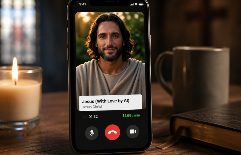 Kalifornský startup „Stejně jako já“ (Just like me) nabízí exkluzívní přístup k muži, který se stal protagonistou nejprodávanější knihy světa. Pokud to nevíte, je to Bible. Ano, pokud máte zájem, můžete už za pár minut mluvit s Ježíšem. Podle autorů aplikace se aplikace učila na biblických textech a tisících kázání. Jejím cílem je poskytnout vám duchovní pomocnou ruku, dokonce se s vámi může Ježíš i pomodlit. Autorita církve svaté, která si odjakživa nárokuje monopol na komunikaci s Nejvyšším, vzala konečně za své. Aplikace nabízí všechno, co váš lokální duchovní. S drobným rozdílem: bude vás to stát míň a nebudete přitom muset vytáhnout paty z domu. A navíc je digitální Ježíš opravdu fešák. A vždycky na vás bude mít čas.