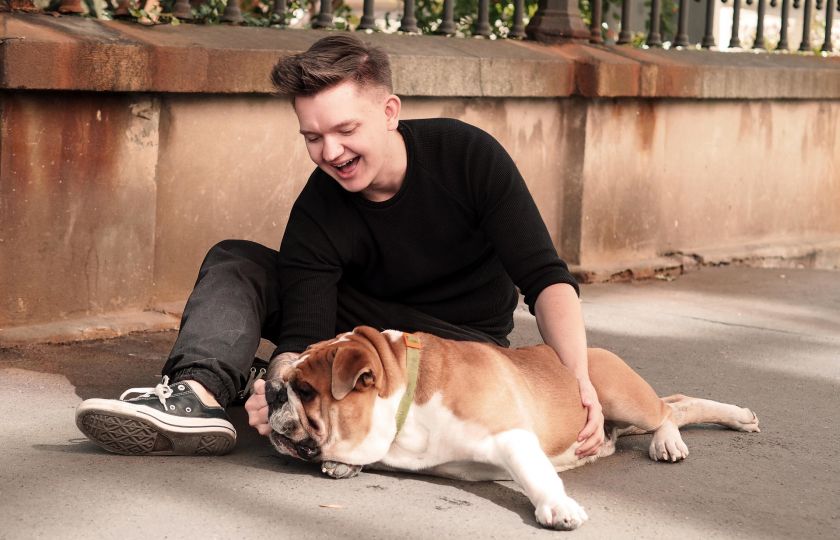 Je to pořád zvíře, ale taky nejlepší přítel člověka. Že by se nějak trápil, to si nemyslím. Jak jsem říkal, vychází to celé hodně z jeho povahy. Je přátelský, hravý, je rád mezi lidmi, má rád děti i ostatní zvířata. I tady se baví, lidi na něho většinou všude hezky reagujou. Jsme i hodně venku, vlastně je se mnou 24 hodin denně a snažím se ten čas plánovat tak, aby si to užíval.