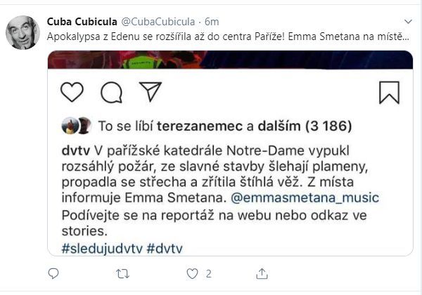 V dobách, kdy se hroutí historie, můžeme náš oprávněný smutek překonávat různě. Humor je možná hořký, ale účinný způsob. Podívejte se do galerie, jak se lidé někdy i hraničním vtipem brání zkáze francouzské národní památky. Za inspiraci děkujeme internetu, facebooku, sociálním sítím a skupině Slovní hračičkové/punners.