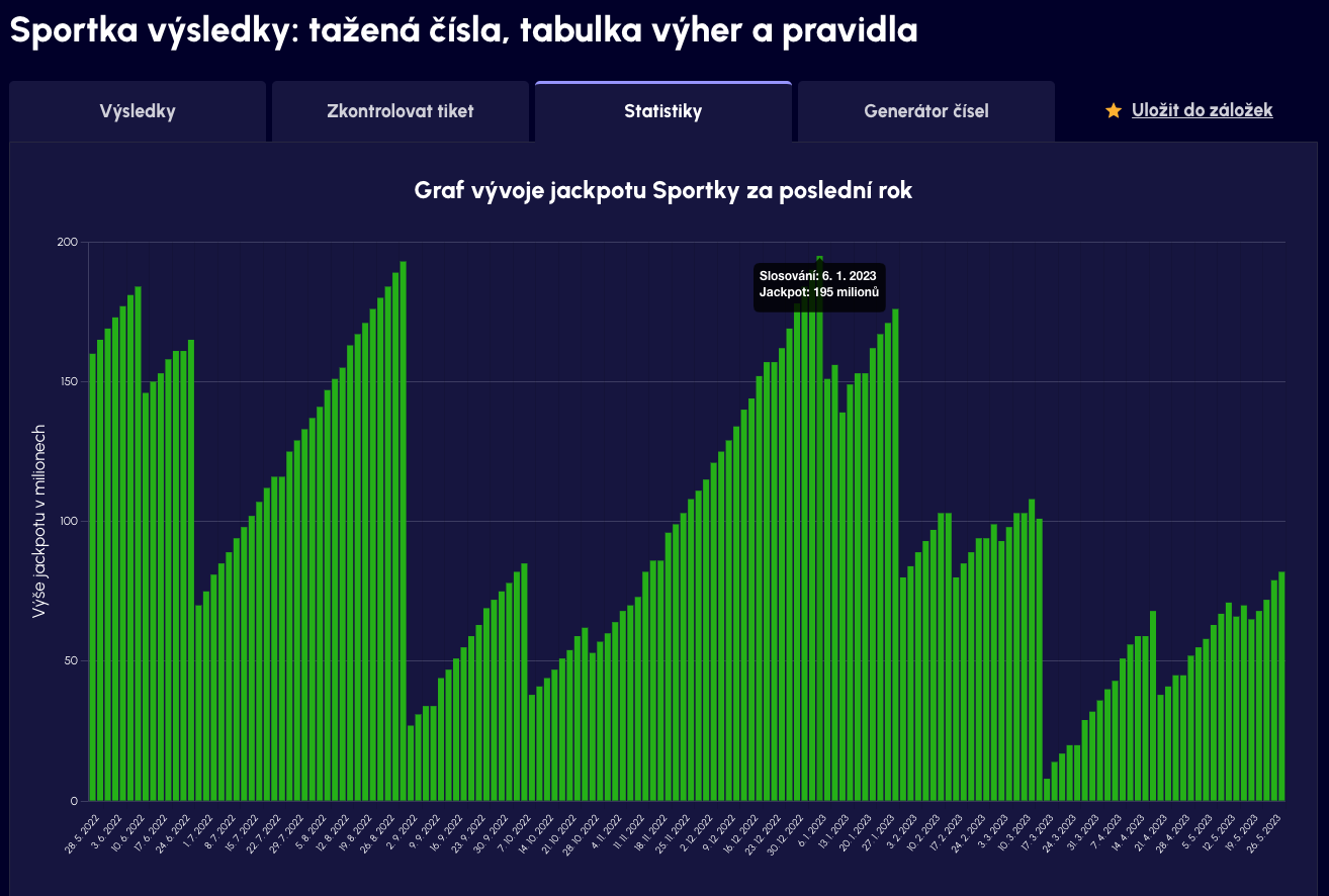Výsledky Sportky, Eurojackpotu, Euromilionů a dalších