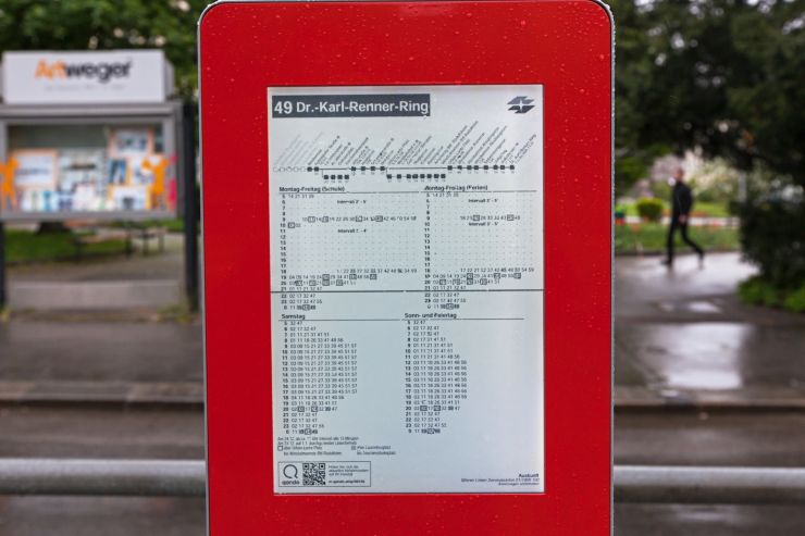 Novou podobu zastávek chystá mimochodem právě teď i Vídeň. Společnost Wiener Linien, která ve Vídni zajišťuje přepravu, chce ušetřit co nejvíce místa pro cestující. A proto navrhla jednotný design s jedním sloupkem, na kterém budou umístěny všechny systémy – například elektronický ukazatel odjezdů, který cestujícím ukazuje čas odjezdu dalšího vozidla v minutách, reproduktor, symboly linek a samozřejmě jízdní řády a plánek okolí, případně informaci, zda je přijíždějící spoj bezbariérový. Na menších zastávkách jsou místo klasických listů papíru instalovány označníky, připomínající klasické počítačové tablety.