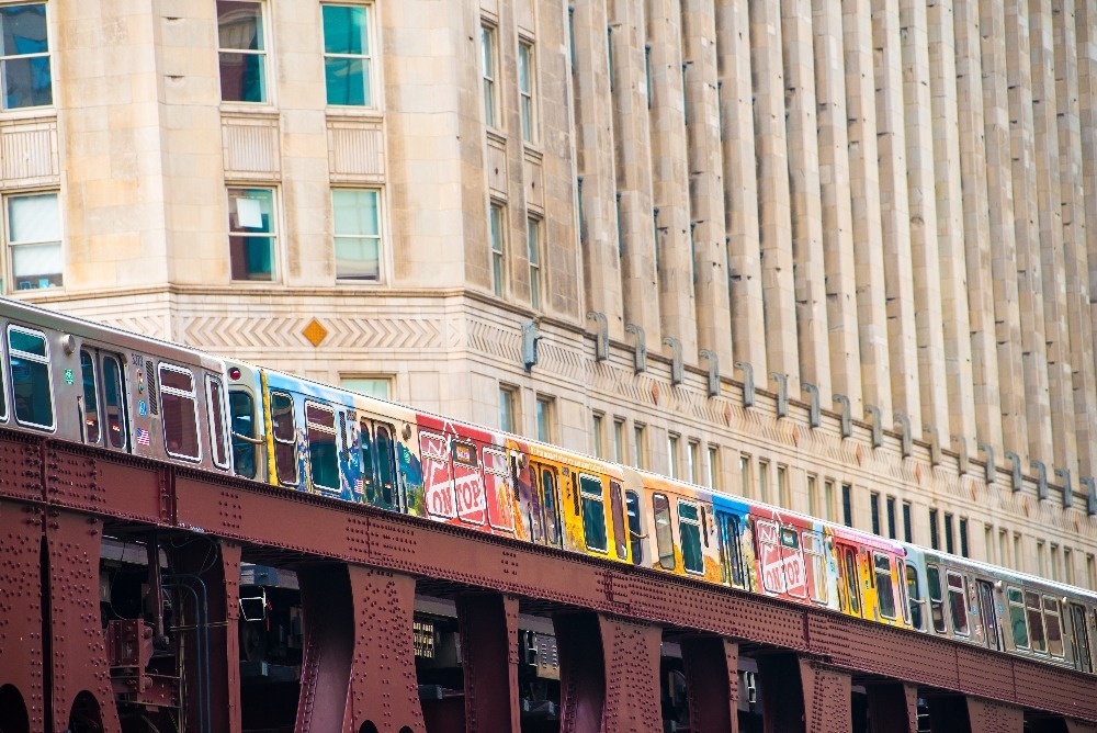 Další klasickou reklamní strategií, která má velký dopad, je využívání prostranství veřejné dopravy. Chicago disponuje jedním z nejrobustnějších systémů veřejné dopravy ve Spojených státech a k šíření komerčních sdělení jej dokázalo beze zbytku využít. Vlaková nádraží, železniční vozy a autobusy mají dostatek levného reklamního prostoru a jejich výhodou je téměř neustálý příliv cestujících.