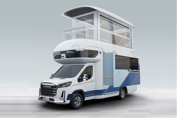 Na první pohled vypadá jako běžný obytňák. Ve skutečnosti je to téměř transformer v této skupině vozidel. Jeho speciálně navržená konstrukce nabízí výrazně více prostoru i možností, jak trávit čas. Dáno je to třeba posuvnými boky, které se po zaparkování mohou vysunout do stran a tím zvětšit interiér o dalších 20 m2 prostoru. Komu by to ale nestačilo, je tu další možnost. Vůz je vybaven vysouvacím druhým patrem, které přidá dalších 12 m2, a dokonce i malým balkonem. Horní prostory jsou podle výrobce určené především jako místnost pro čajový sedánek nebo jako jóga studio. Přístup nahoru pak zajišťuje malý výtah. V dolním, moderně zařízeném patře, je pak všechno, co se od karavanu očekává, včetně velké televize, dřevěné podlahy nebo prostorného gauče do tvaru L. Cena vozidel modelu SAIC Maxus lehce přesahuje 9 milionů korun.