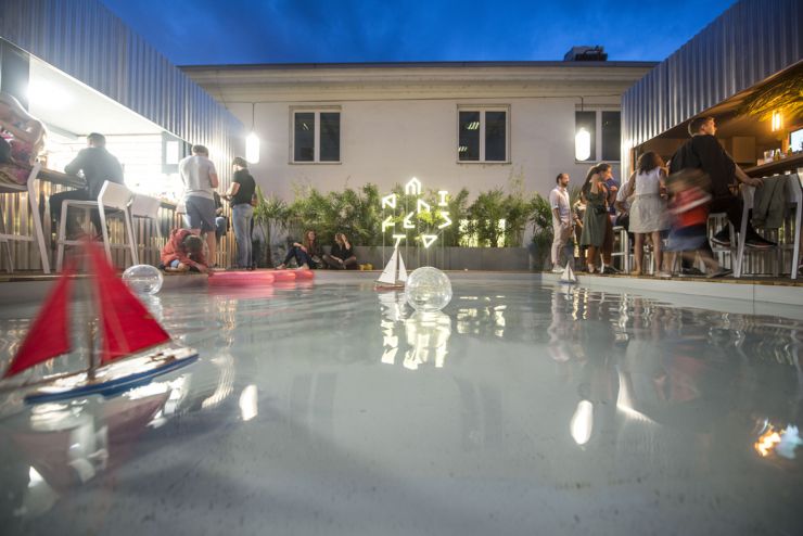 Uznávané architektonické duo Chybík + Krištof prostor vybavilo mělkou vodní plochou a příjemnou palubovou podlahou, dále na dvoře smíchovského Národního domu vznikla zahrada plná květináčů s bambusem, chmelem a kvetoucími popínavkami. Po vodě v místním brouzdališti budou podobně jako v pařížských parcích plout ručně vyráběné miniatury dřevěných plachetnic, které si budou moci návštěvníci během oběda posílat sem a tam, dokud nedostanou zase hlad.