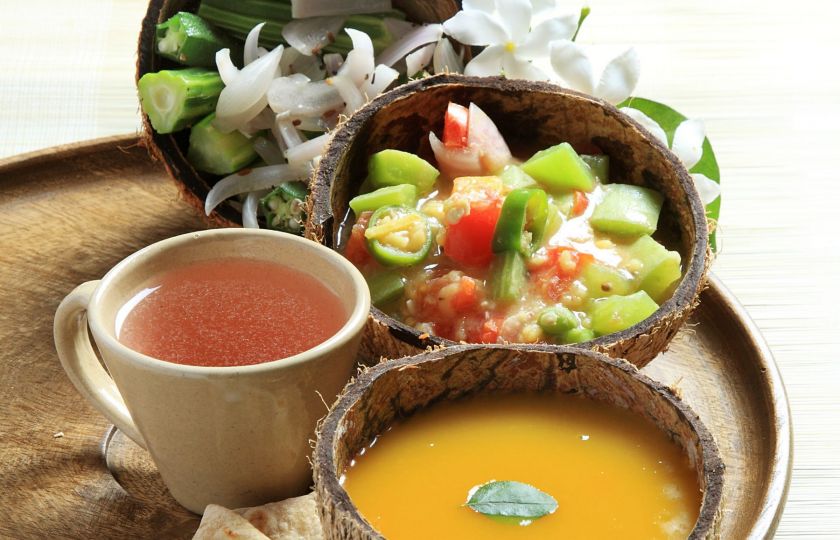 Ájurvéda rozeznává 6 chutí – sladkou, kyselou, slanou, hořkou, trpkou a pálivou. Sladká, kyselá a slaná chuť dává sílu tělu a posiluje kaphu. Pálivá a kyselá chuť zvyšuje pittu a trpká a hořká chuť zvyšuje vatu. V životě i na talíři by měly být všechny tyto chutě vyrovnané. A proto se během největších oslav v Indii vaří až 60 druhů kari, aby každý bůh byl uspokojen.
