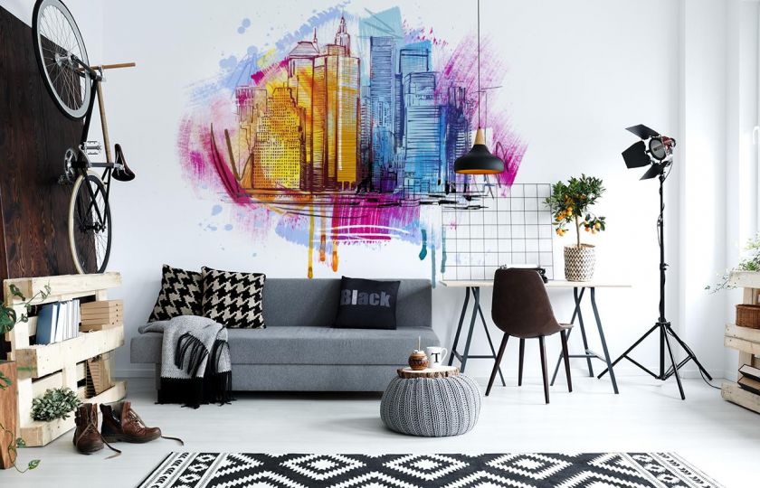 Jestliže milujete jednoduchost spíše v abstrakci, pak není problém vsadit na barevný inkoust, jímž je postříkána tmavá stěna. Dojde k vytvoření jakéhosi shluku barev, pod nímž si můžeme představit fakticky cokoli. Motiv je velmi jednoduchý, nicméně možná o to poutavější je pohled na něj.