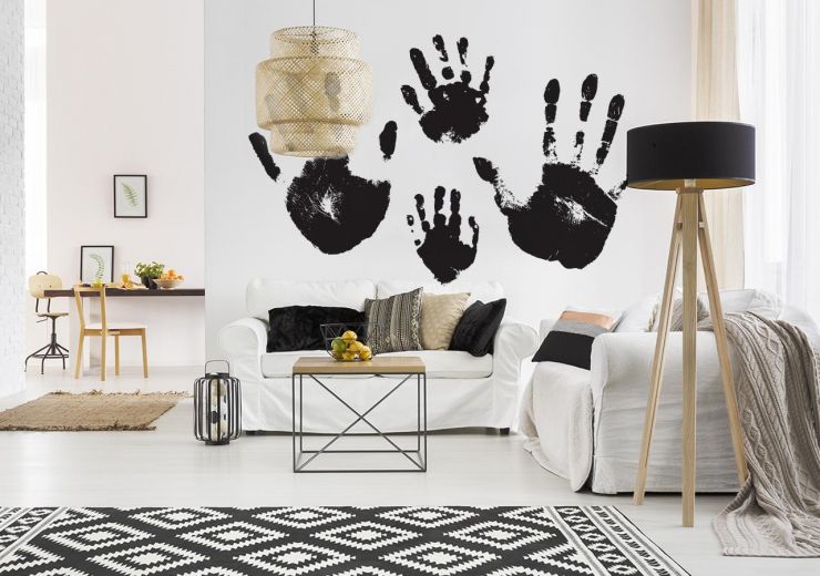 Pokud chcete vsadit spíše na velmi jednoduché provedení fototapety na zeď graffiti, pak se nebojte motivu ruky. Ta je provedena v černé barvě. Jde fakticky o otisk černé ruky na bílém podkladu.