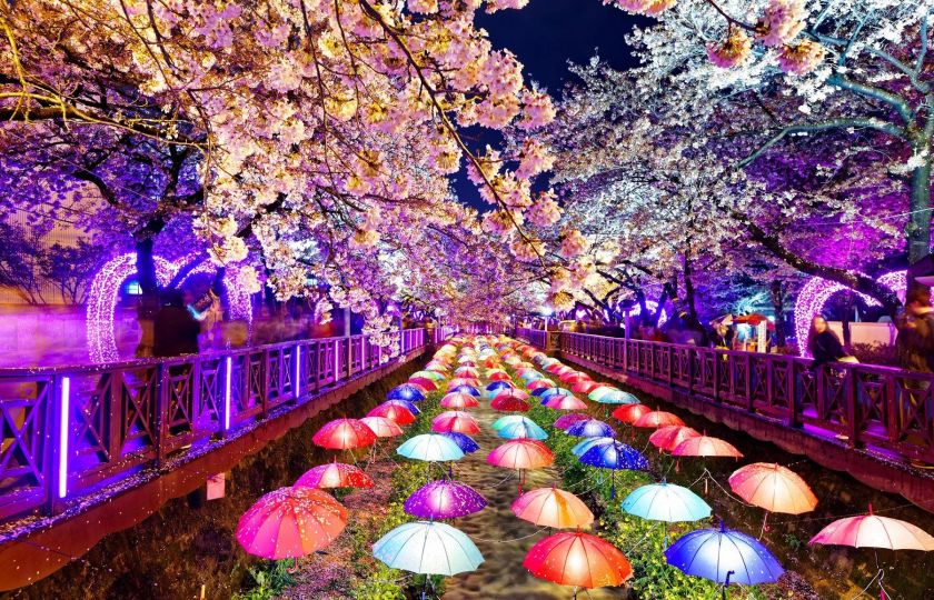 Jedničkou mezi oslavami je město Jinhae se svými třešňovými alejemi. V době největšího rozpuku je plné turistů, kteří se fotí pod narůžovělými krasavicemi, procházejí se ulicemi či kolem nádraží, kde projíždí květinovou dráhou vlak. V horách zase rostou květy divoké, plné nezkrotnosti a jemného aroma.