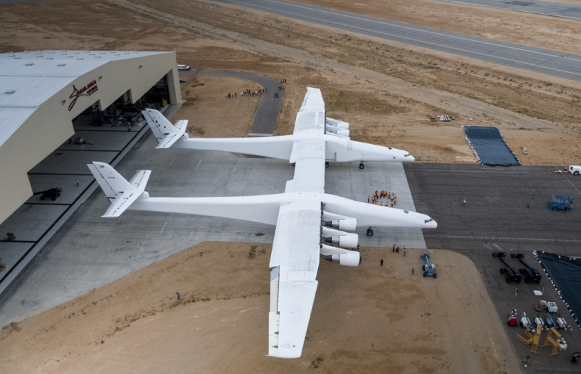 Největší letoun všech dob Stratolaunch je tohoto výletu na hranici vesmíru schopen a právě prostor mezi oběma trupy je určen pro zavěšení rakety či raketoplánu o celkové hmotnosti až 275 tun. Jeho velikost vynikne ve srovnání se známým Boeingem 747-8. Délka 73 m (Boeing 76 m), rozpětí 117 m (68,4 m) a maximální vzletová hmotnost 589 670 kg (447 700 kg).