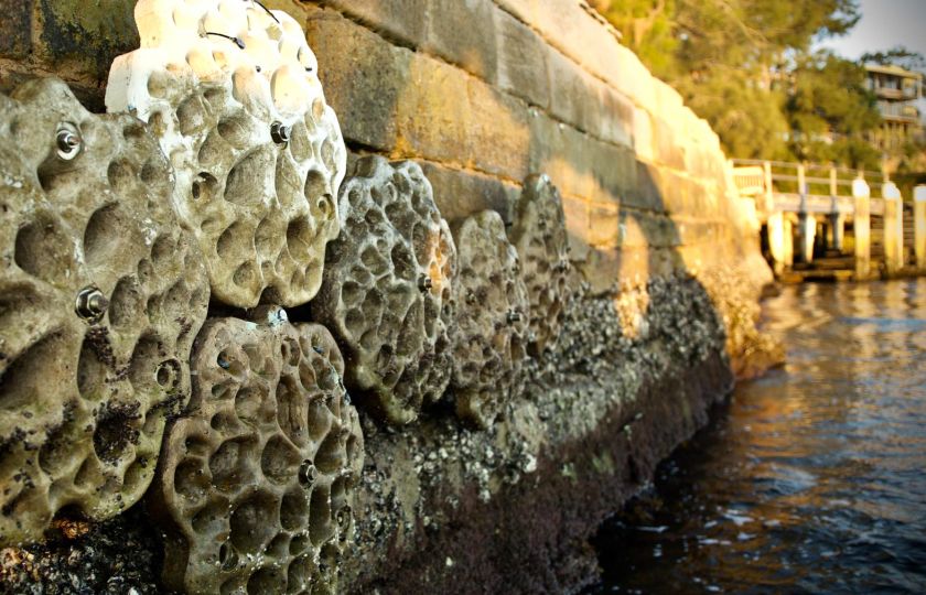 Dlaždice živé hráze jsou připevněny k povrchu stávající ploché mořské hráze v přístavu Sydney. Postupem let by měli tuto zeď trvale zabydlet zmínění živí čističi. Již po týdnu od své instalace byla živoucí stěna tvořící nový povrch mořské hráze osídlena ústřicemi a dalšími organismy, které se živí nečistotami.