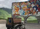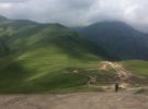 Alpy se sovětským dotykem. Panoramata, která nekazí žádné hotely, sjezdovky ani výstavní vilky s muškáty. Čistá drsná příroda. Potok ze skály si razí cestu horským chodníkem. Musíme gazíkem s místními. Řidič zkušeně balancuje na hraně skály. Kavkaz, muly a čepice. Konečně stojíme nahoře před kostelíkem Kazbegi. Bez dechu.
