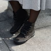 Nebojte se nevšedních kombinací. Sukně v 3/4 délce rozhodně není pouze letní záležitostí, jen ji obohaťte o průsvitné černé punčocháče. Na tělové silonky raději zapomeňte, tento trend se snad už nikdy nevrátí. Mikina s metalickou aplikací vám dodá extravagantní šmrnc a na nohy obujte černé tenisky z konopí.