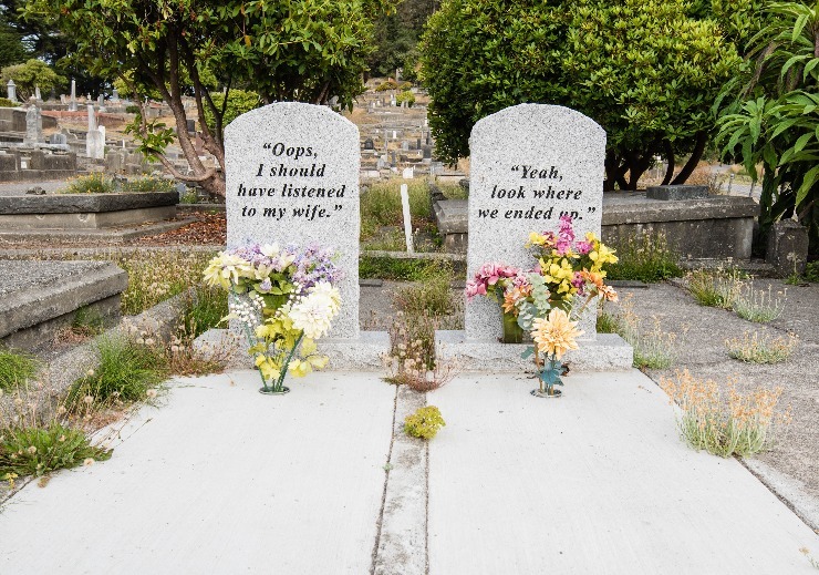 Mírně kontroverzní metodou, zpopularizovanou díky Terapii přijetí a odhodlání terapeuta Russe Harrise, je sepsání vlastního epitafu. Na pozadí této techniky sice podle Harrise je možnost, jak pacient může demonstrovat, co je pro něj v životě důležité a jak by chtěl, aby si jej blízcí pamatovali, nicméně má zajímavý, zřejmě nečekaný efekt. Po celém světě byly na místech posledního odpočinku vztyčeny náhrobní kameny lidí, kteří zjevně se strachem ze smrti (už) problém neměli. Jsou na nich nápisy jako „Říkal jsem, že mi není dobře“, „Doufal jsem, že to bude pyramida“, nebo „Konečně jsme našli místo, kde se dá v pohodě zaparkovat!“.