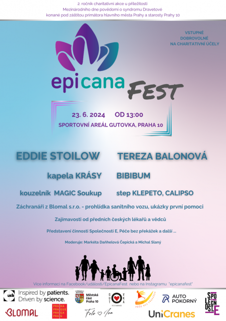 Letošní druhý ročník EpicanaFestu se uskuteční přímo v Mezinárodní den povědomí o syndromu Dravetové, který je každoročně 23. června. V neděli na Gutovce v Praze 10 vystoupí kapela Eddie Stoilow, objev roku Slavíka Tereza Balonová, pro děti Bibibum a spoustu dalšího. Všichni jste srdečně zváni. Vstupné dobrovolné a výtěžek poslouží na úhradu programu epitábora, který se uskuteční letos v srpnu.