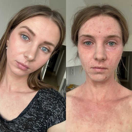 To znamená, že obsahovaly hormonu mnohem více. Musela jsem je mazat často a ve velkém množství, protože když jsem nenamazala den nebo dva, kůže se rapidně a neustále zhoršovala. Takže asi po roce hledání na internetu jsem zjistila, že existuje něco jako TSW, Topical Steroid Withdrawal, a začala jsem svou cestu.